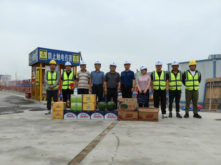 劉勐一行來到航空工業(yè)自控所錦業(yè)園區(qū)三期建設(shè)項(xiàng)目施工現(xiàn)場(chǎng),詳細(xì)了解并查看了現(xiàn)場(chǎng)管理情況及工程施工進(jìn)度,親切慰問了奮戰(zhàn)一線的工作人員,為他們送上防暑降溫慰問品和慰問金,并對(duì)夏季高溫及汛期安全作業(yè)、人員管理等提出了具體要求。